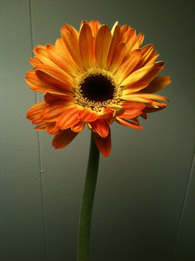 I love gerber daisies; their thin layered petals, large center and vivid colors are simple and beautiful. I recently received some bright orange ones as a "just because" surprise from my boyfriend max. Besides loving the surprise, I am loving what they add to my space- its amazing what a bold splash of color these little flowers can bring. The orange petals and bright green stems make a fresh pop of color that is fresh and fun, hopefully there will be many more gerber daisy surprises to come!